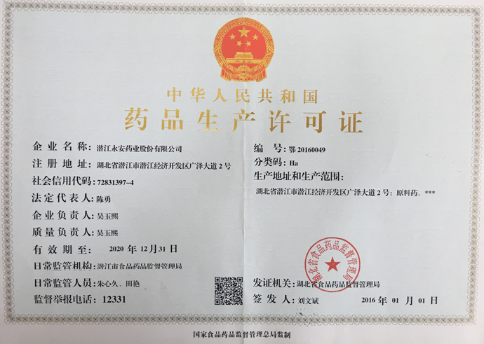 潛江永安藥業(yè)股份有限公司成立于2001年,坐落于江漢平原腹地潛江市國家高新技術(shù)產(chǎn)業(yè)開發(fā)區(qū),占地500余畝,注冊資金貳億玖仟肆佰陸拾捌萬貳仟伍佰元整,是一家擁有自主知識產(chǎn)權(quán)的國家高新技術(shù)企業(yè)。公司股票于2010年3 月5日在深圳證券交易所掛牌上市(股票代碼為002365)。公司具有雄厚的技術(shù)開發(fā)能力,是湖北省創(chuàng)新型企業(yè)和湖北省知識產(chǎn)權(quán)建設(shè)示范企業(yè)。公司研發(fā)平臺分別被認(rèn)定為省級企業(yè)技術(shù)中心和湖北省功能性食品添加劑工程技術(shù)研究中心。 經(jīng)過多年的發(fā)展,公司形成了以食品及藥品添加劑牛磺